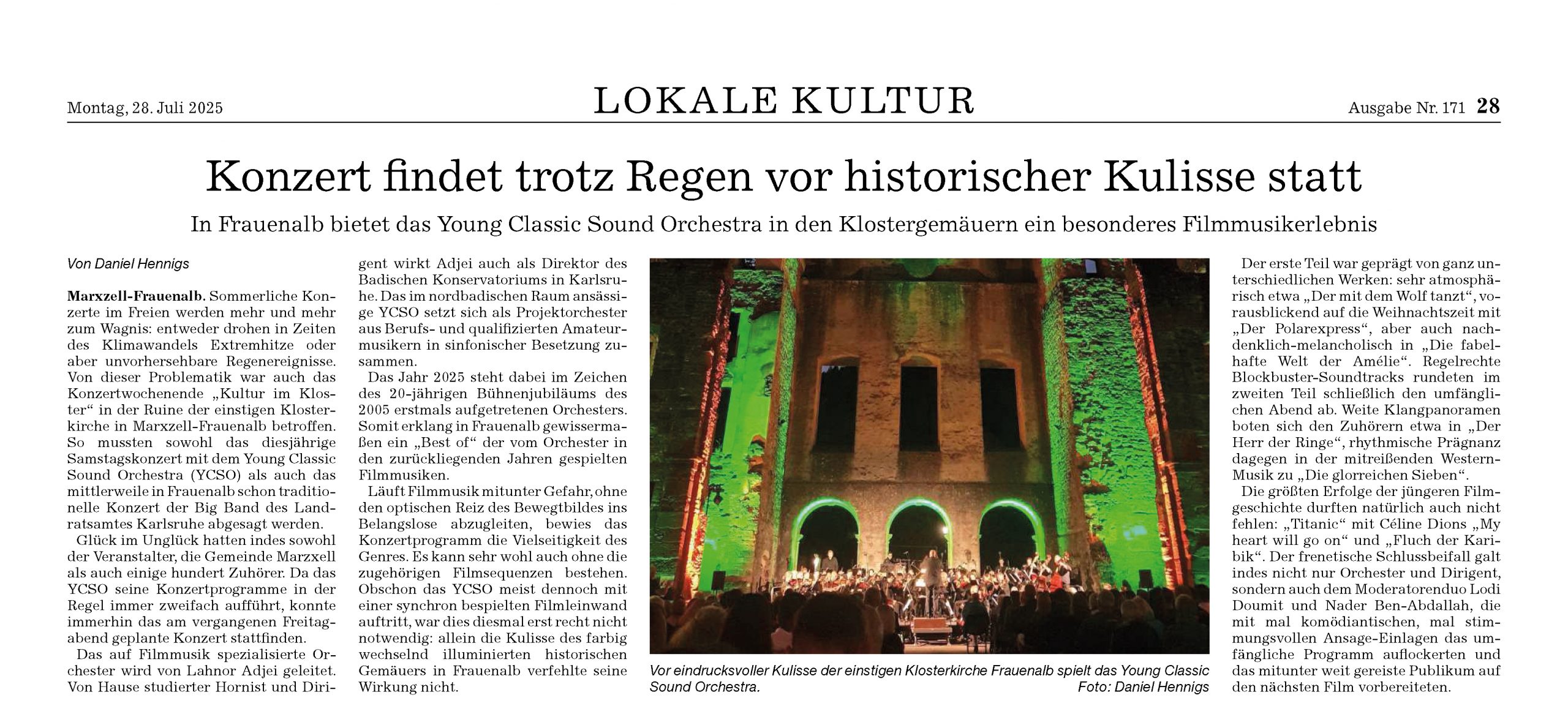Fazit: Ein stimmungsvolles Filmmusikerlebnis vor historischer Kulisse, das Lust auf die nächsten Konzertabende in Frauenalb macht. (Quelle: Lokale Kultur, BNN, von Daniel Hannigs)